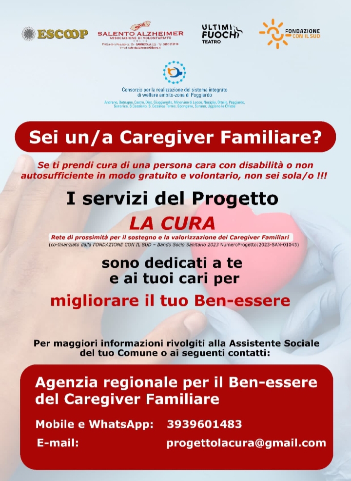 Progetto "LA CURA". rete di prossimità per il sostegno e la valorizzazione dei Caregiver famigliari.
